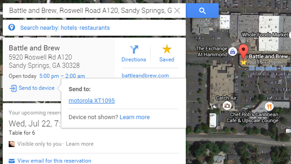 في كثير من الأحيان، نستخدم الحاسوب للبحث عن أي مكان من خرائط جوجل ،ولكن ماذا لو تريد ارسال احداثيات الموقع أو المكان إلى هاتف الذكي ؟ الآن يمكنك القيام بذلك بشكل سهل جدا من خلال الميزة الجديدة التي تظهر على قائمة البحث في النسخة الالكترونية لهذه الخرائط على جهاز الكمبيوتر ، لحفظ أو ارسال احداثيات الموقع أو المكان إلى هاتف الذكي ،يكفي ان تقوم بالنقر على "Send to Device".طبعا يجب ان تستخدم نفس الايميل !